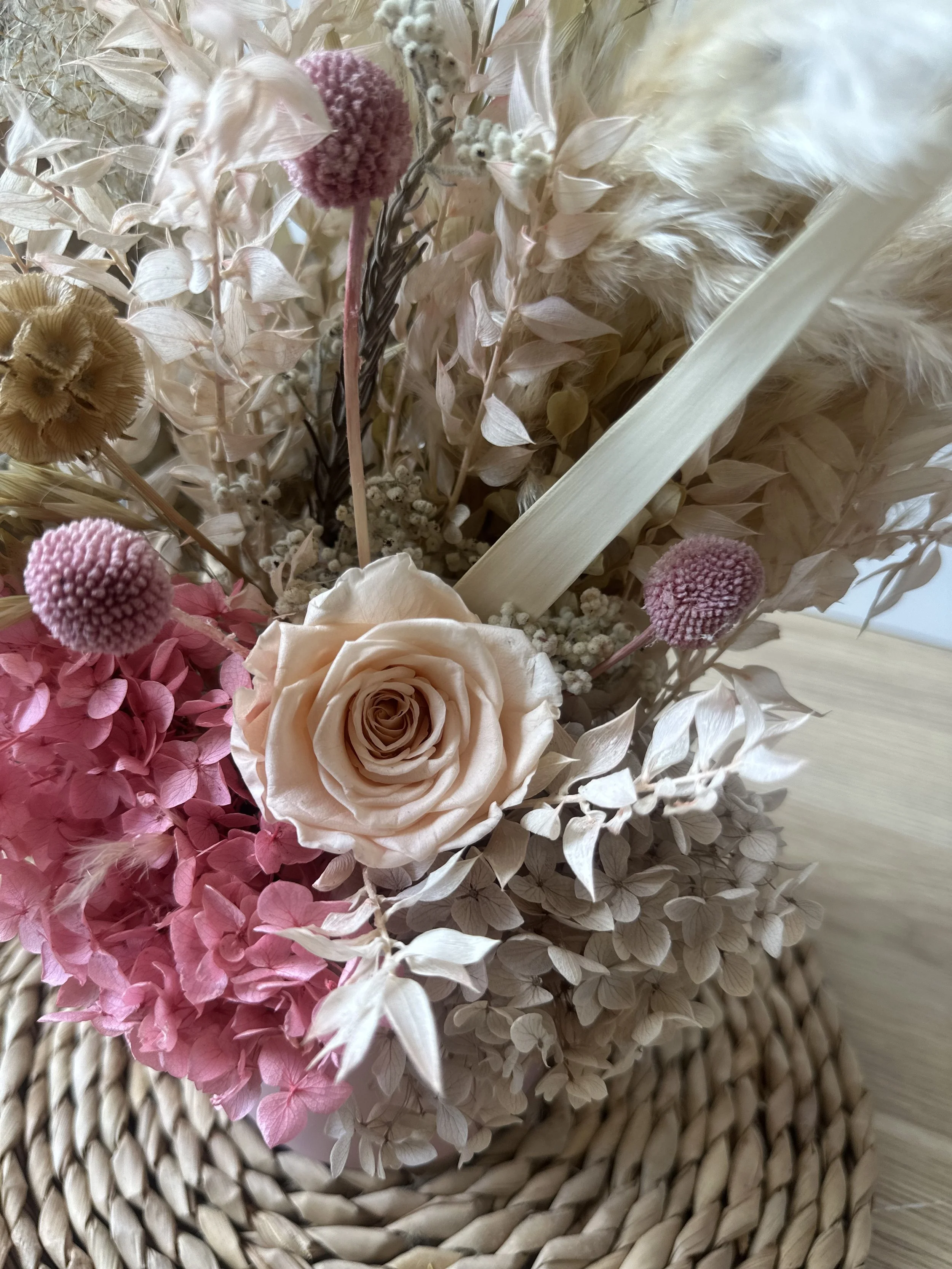 Bespoke dried flower arrangements, combining a touch of metal with our everlasting dried florals. A way to really wow your space.